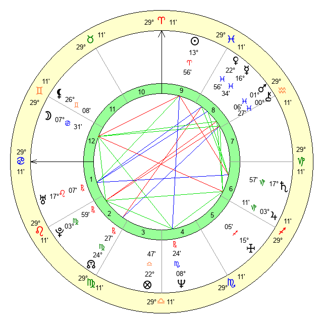 | Venus | 22 Pisces 57 | 26 Pisces 24 | 12 Gemini 50 |