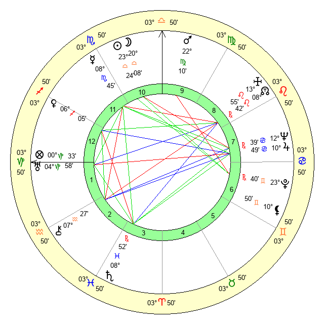 | Moon | 20 Libra 3 | 11 Virgo 53 | 6 Pisces 42 |