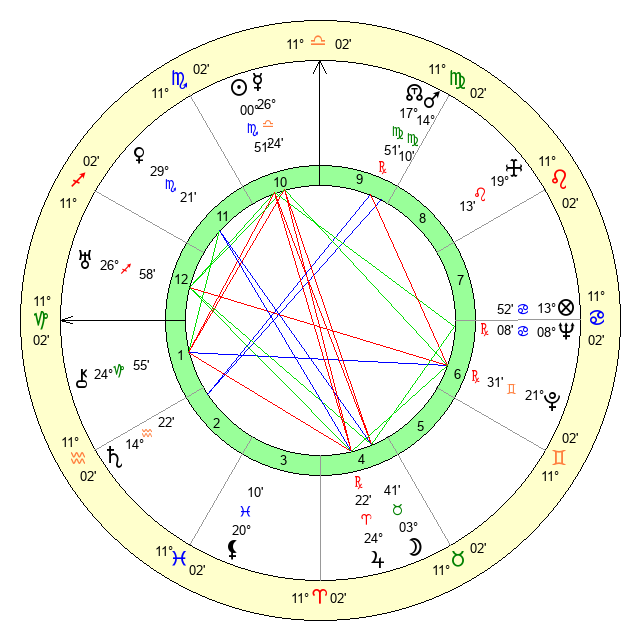 | Mars | 14 Virgo 11 | 22 Scorpio 18 | 17 Scorpio 23 |