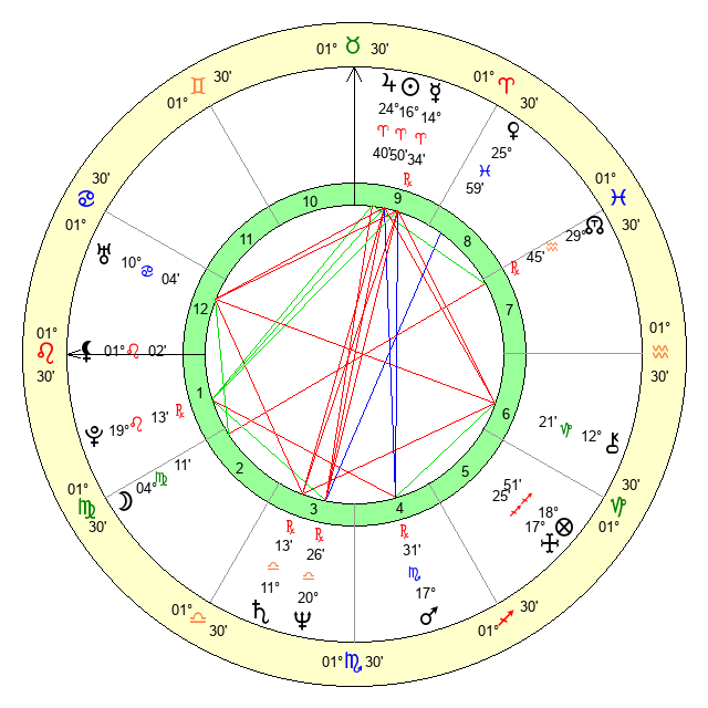 | Moon | 4 Virgo 9 | 6 Leo 44 | 14 Taurus 57 |