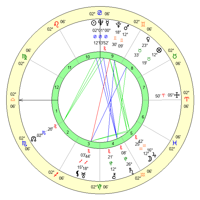 | Sun | 2 Cancer 13 | 3 Cancer 26 | 1 Scorpio 21 |
