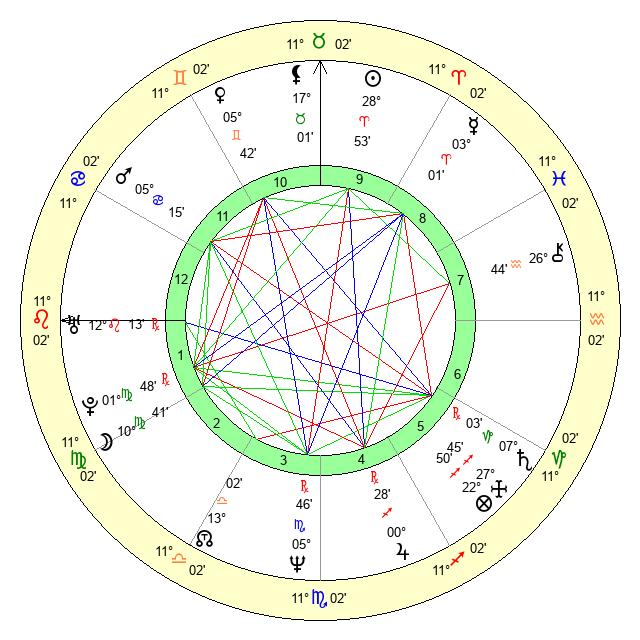 | Neptune | 5 Scorpio 46 | 0 Aries 43 | 4 Scorpio 18 |