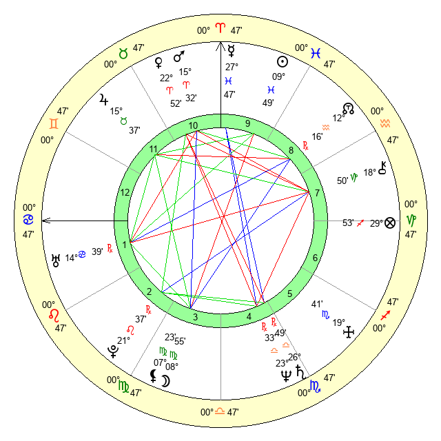| Mars | 15 Aries 33 | 17 Cancer 9 | 7 Gemini 16 |