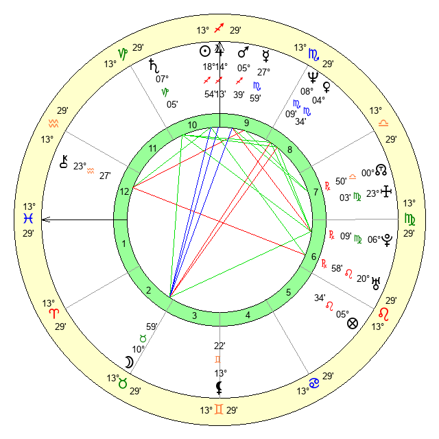 | Moon | 10 Taurus 57 | 18 Virgo 1 | 1 Libra 43 |