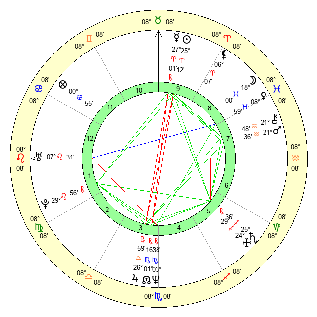| Sun | 25 Aries 13 | 25 Aries 58 | 29 Gemini 48 |