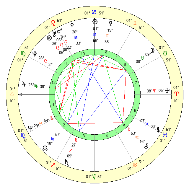| Mars | 1 Leo 22 | 3 Virgo 35 | 14 Virgo 16 |