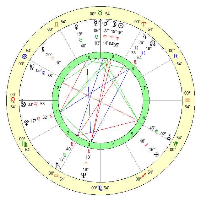 | Moon | 18 Aries 56 | 6 Leo 44 | 0 Capricorn 12 |