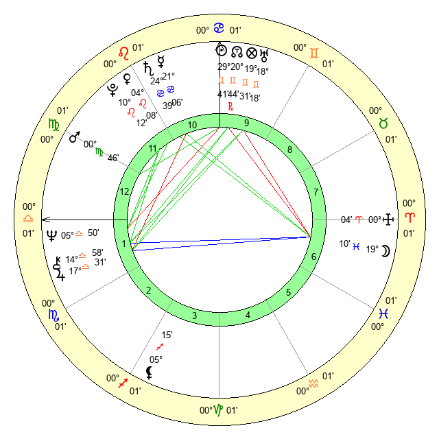 | Sun | 29 Gemini 42 | 0 Cancer 34 | 15 Virgo 26 |