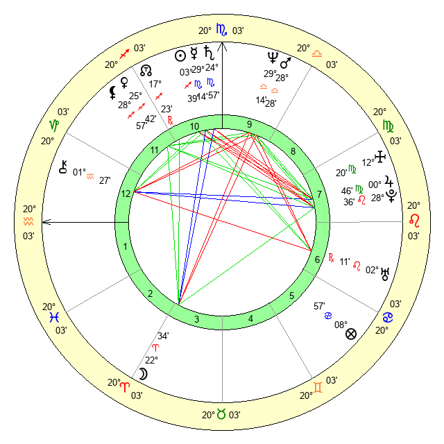 | Saturn | 25 Scorpio 24 | 25 Pisces 3 | 2 Sagittarius 9 |