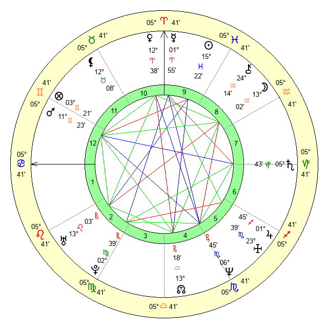 | Moon | 12 Aquarius 58 | 16 Gemini 40 | 2 Cancer 32 |