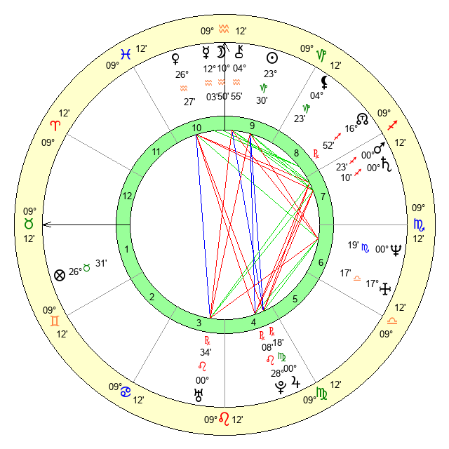 | Neptune | 0 Scorpio 20 | 27 Pisces 32 | 29 Libra 44 |