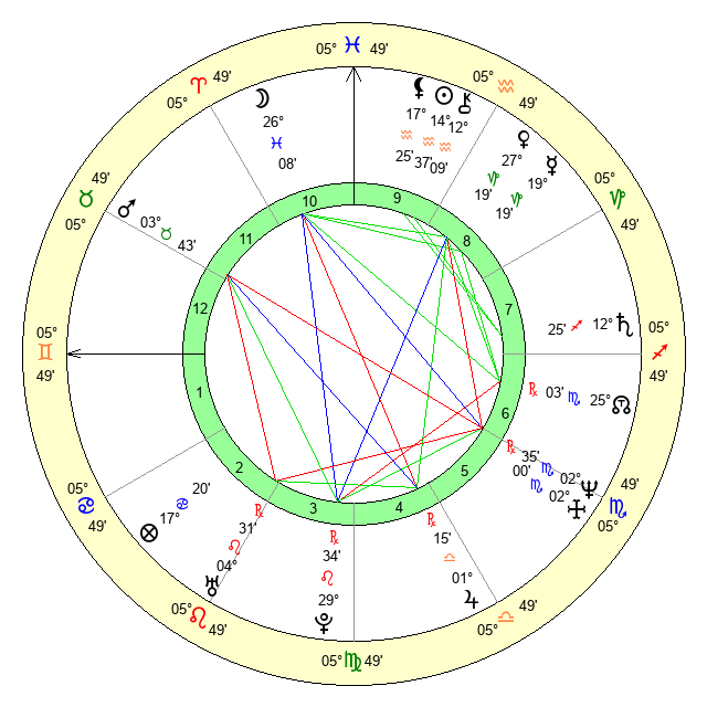 | Moon | 26 Pisces 10 | 23 Aries 41 | 28 Virgo 11 |