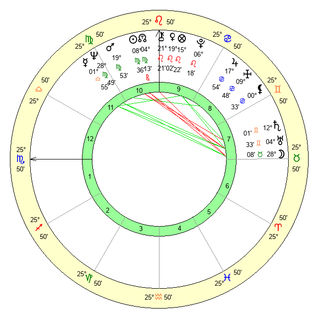 | Mercury | 1 Libra 55 | 22 Leo 25 | 25 Scorpio 2 |
