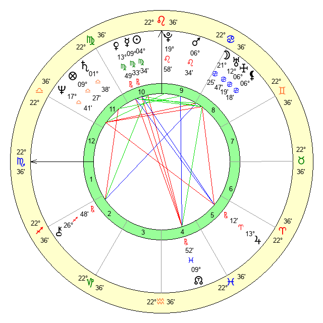 | Venus | 13 Virgo 49 | 3 Leo 36 | 0 Libra 54 |