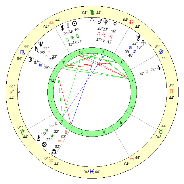 | Saturn | 25 Libra 51 | 29 Pisces 3 | 4 Scorpio 16 |