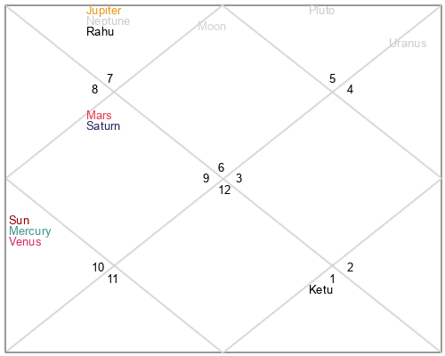 | Rahu | 5 Scorpio 19 | 29 Pisces 26 | 1 Scorpio 47 |