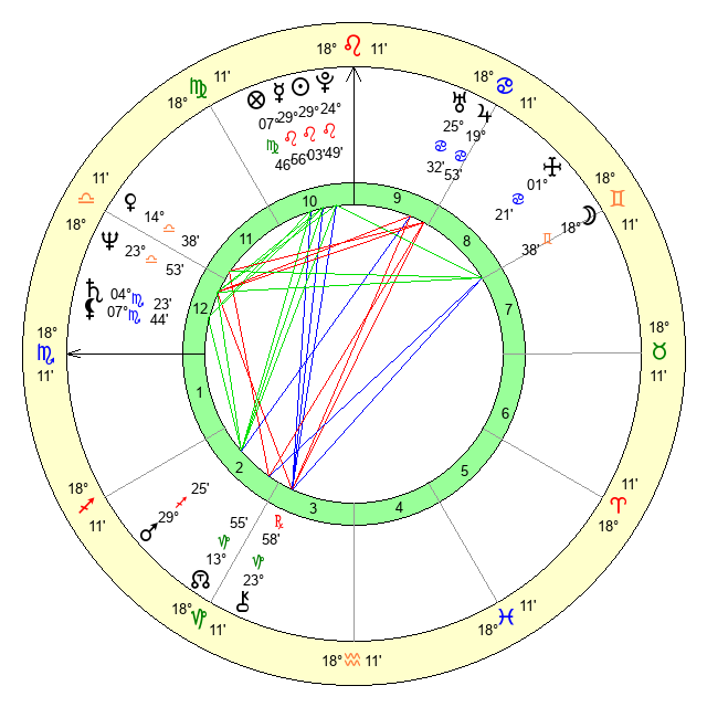 | Venus | 14 Libra 38 | 26 Cancer 27 | 29 Scorpio 3 |