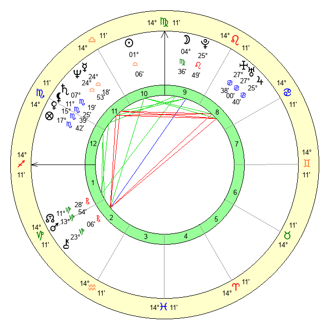 | Venus | 15 Scorpio 39 | 6 Virgo 20 | 14 Scorpio 41 |