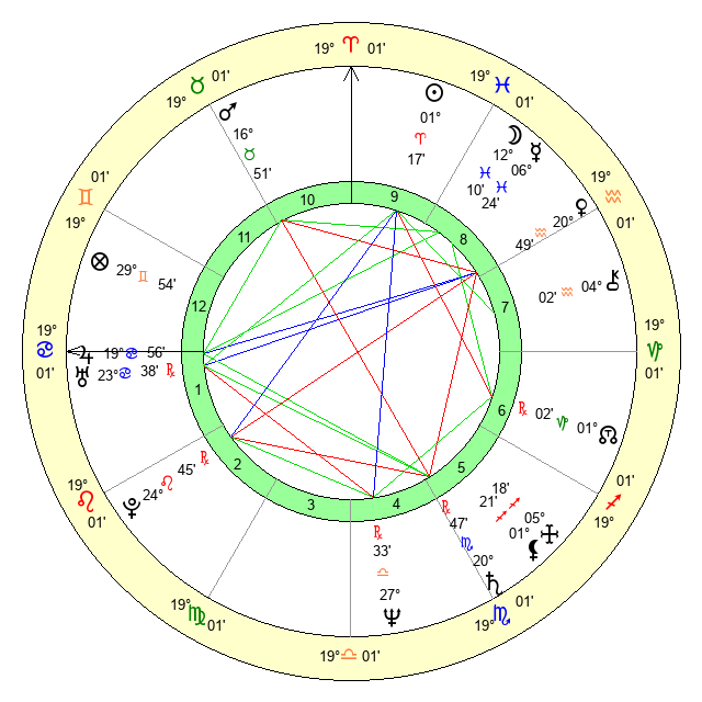 | Saturn | 21 Scorpio 18 | 23 Pisces 17 | 16 Scorpio 47 |
