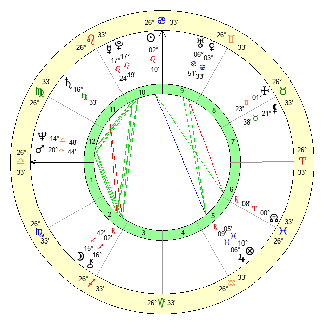 | Moon | 15 Sagittarius 43 | 14 Leo 26 | 6 Virgo 50 |