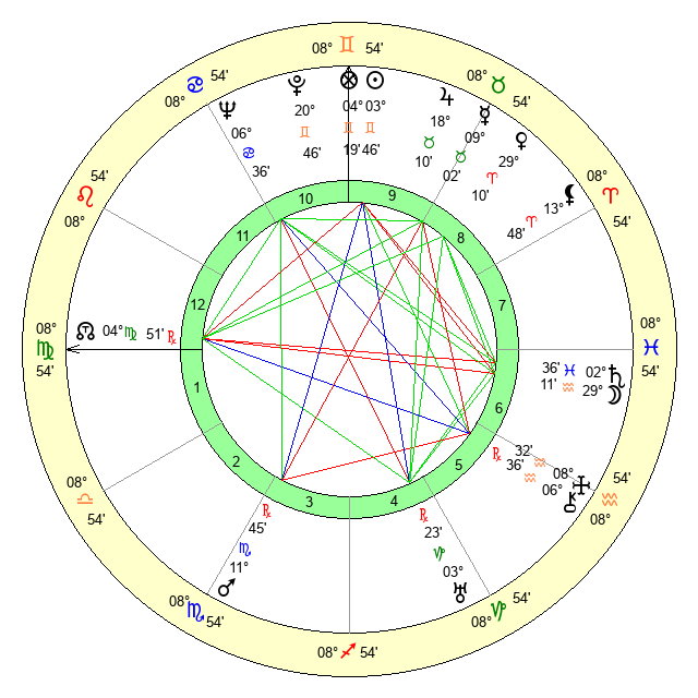 | Sun | 3 Gemini 47 | 4 Gemini 44 | 29 Virgo 0 |
