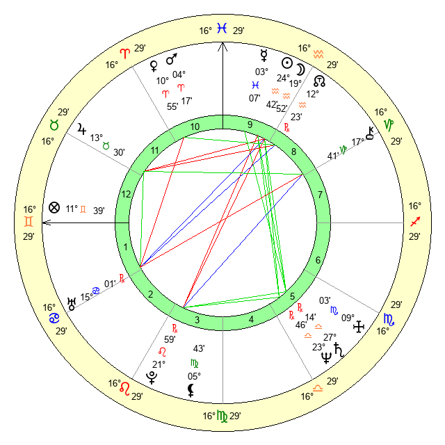 | Sun | 24 Aquarius 42 | 25 Aquarius 15 | 6 Taurus 9 |