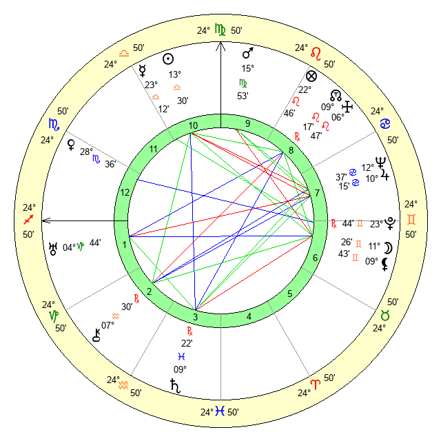 | Mars | 15 Virgo 54 | 10 Scorpio 27 | 29 Scorpio 1 |