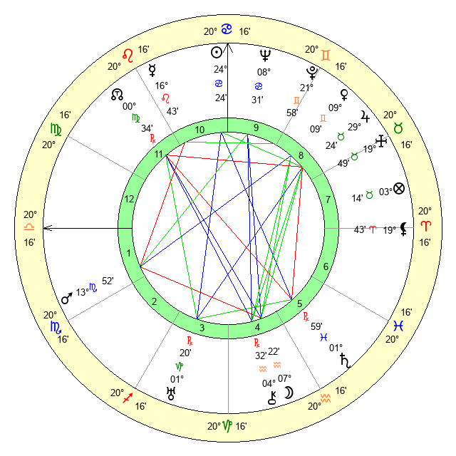 | Sun | 24 Cancer 24 | 25 Cancer 22 | 21 Scorpio 40 |