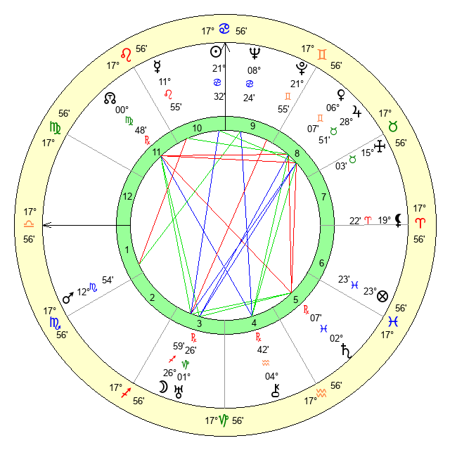 | Sun | 21 Cancer 32 | 22 Cancer 30 | 18 Scorpio 39 |