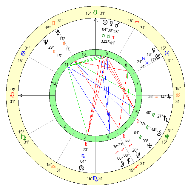 | Venus | 18 Pisces 21 | 27 Pisces 32 | 8 Leo 26 |