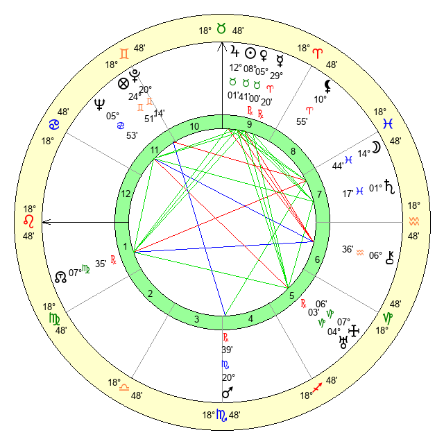 | Moon | 14 Pisces 40 | 6 Gemini 33 | 26 Cancer 14 |