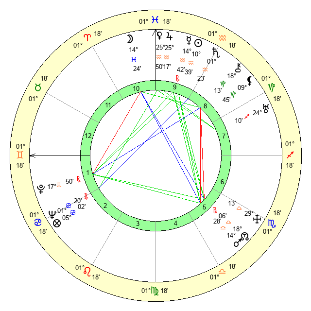 | Moon | 14 Pisces 30 | 10 Pisces 40 | 12 Virgo 58 |