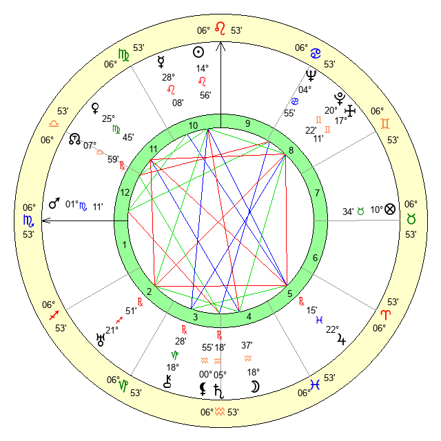 | Mercury | 28 Leo 9 | 4 Leo 37 | 24 Sagittarius 52 |