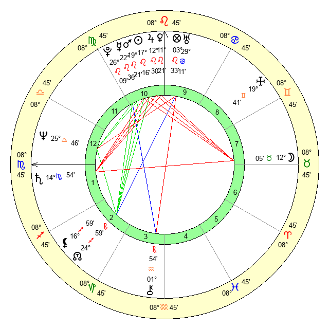 | Venus | 11 Leo 21 | 12 Cancer 17 | 8 Scorpio 20 |