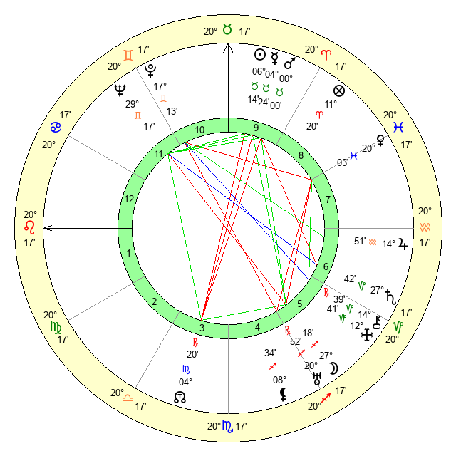 | Sun | 6 Taurus 14 | 7 Taurus 26 | 4 Virgo 11 |