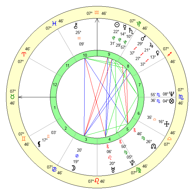 | Jupiter | 21 Sagittarius 21 | 12 Gemini 3 | 1 Capricorn 53 |