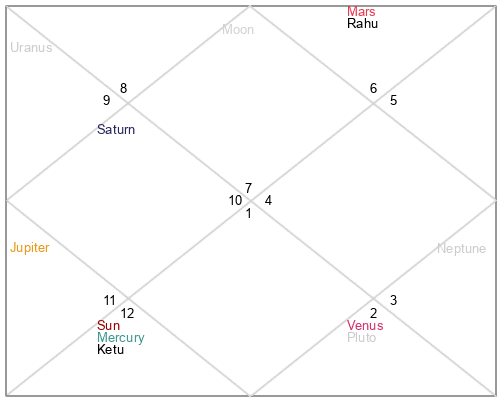 | Rahu | 15 Libra 47 | 26 Pisces 6 | 9 Libra 19 |