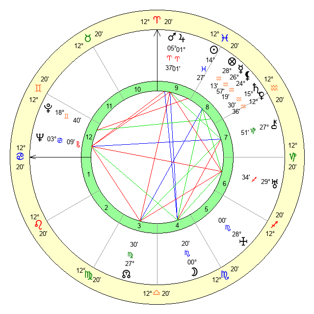 | Mars | 5 Aries 38 | 17 Cancer 32 | 2 Cancer 35 |