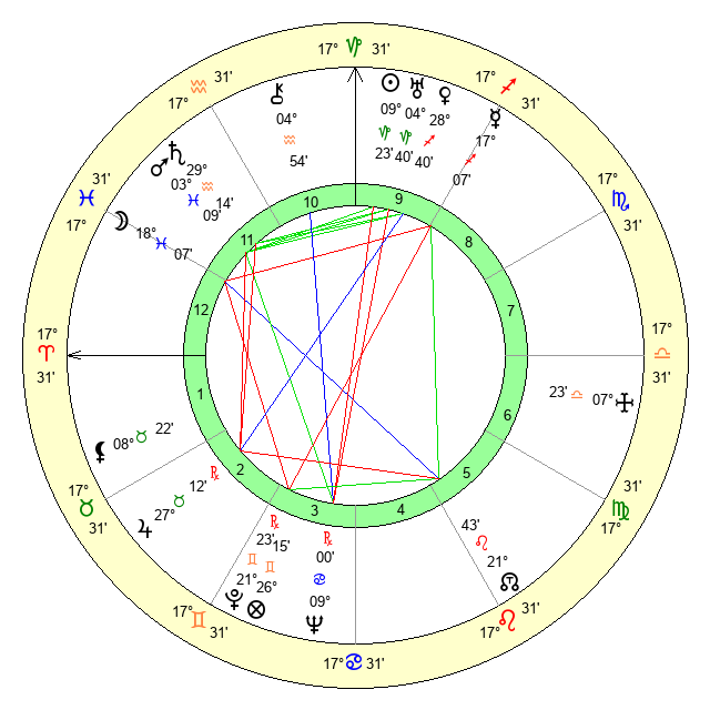| Saturn | 29 Aquarius 41 | 26 Pisces 3 | 12 Pisces 55 |
