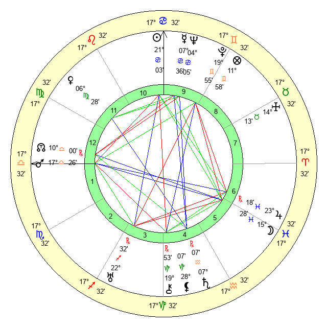 | Sun | 21 Cancer 3 | 22 Cancer 30 | 20 Scorpio 9 |