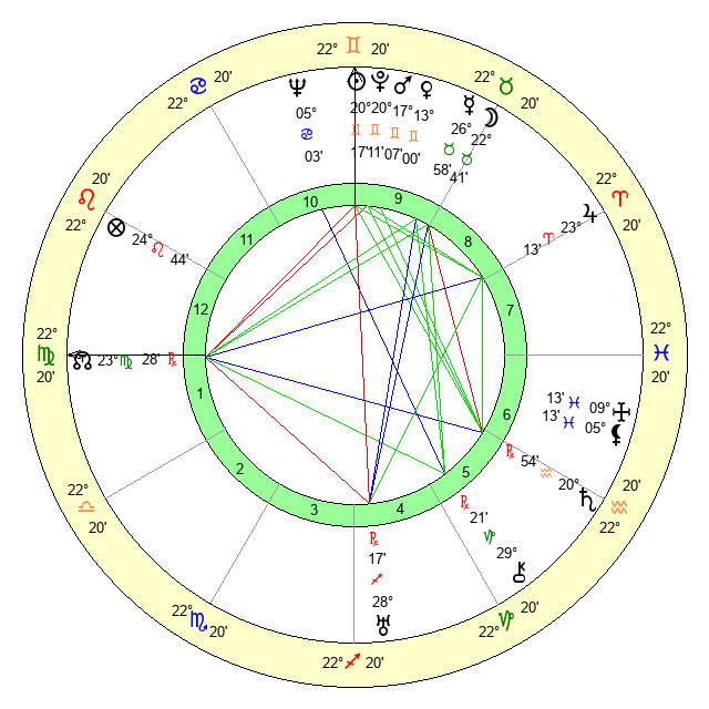 | Moon | 22 Taurus 40 | 25 Sagittarius 28 | 7 Scorpio 33 |