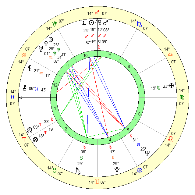 | Moon | 23 Capricorn 34 | 18 Virgo 1 | 9 Pisces 57 |