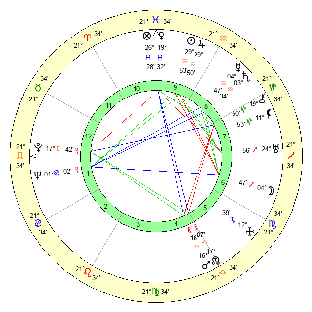 | Sun | 29 Aquarius 53 | 1 Pisces 18 | 29 Gemini 7 |