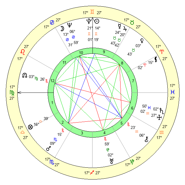 | Sun | 14 Gemini 20 | 15 Gemini 17 | 9 Libra 48 |