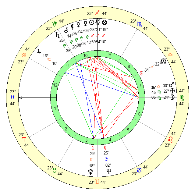 | Moon | 24 Virgo 1 | 15 Capricorn 18 | 11 Pisces 45 |
