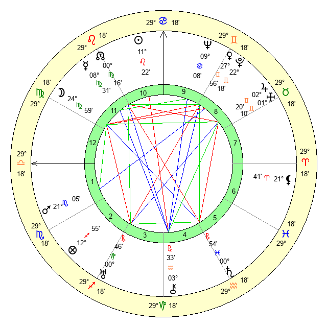 | Venus | 27 Gemini 56 | 4 Cancer 59 | 21 Scorpio 55 |