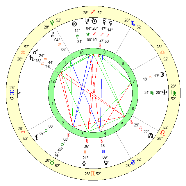 | Saturn | 28 Aquarius 44 | 25 Pisces 31 | 11 Pisces 56 |