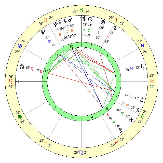 | Sun | 22 Taurus 0 | 23 Taurus 11 | 16 Virgo 5 |