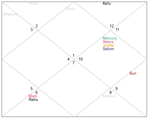 | Rahu | 20 Libra 45 | 11 Pisces 45 | 14 Libra 14 |
