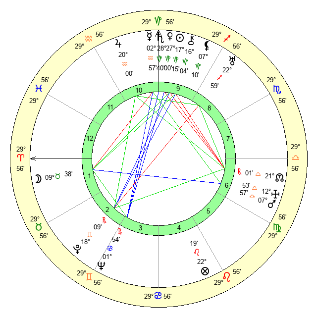 | Moon | 9 Taurus 48 | 26 Virgo 12 | 21 Scorpio 28 |